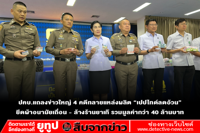 เมื่อวันที่ 18 กุมภาพันธ์ 2569 กองบัญชาการตำรวจสอบสวนกลาง (CIB) และ อย. แถลงผลการบุกตรวจค้นแหล่งผลิตและจำหน่ายผลิตภัณฑ์ยาฉีดกลุ่มเปปไทด์ที่ไม่ขึ้นทะเบียนตำรับยา ในพื้นที่กรุงเทพฯ, นครปฐม และราชบุรี