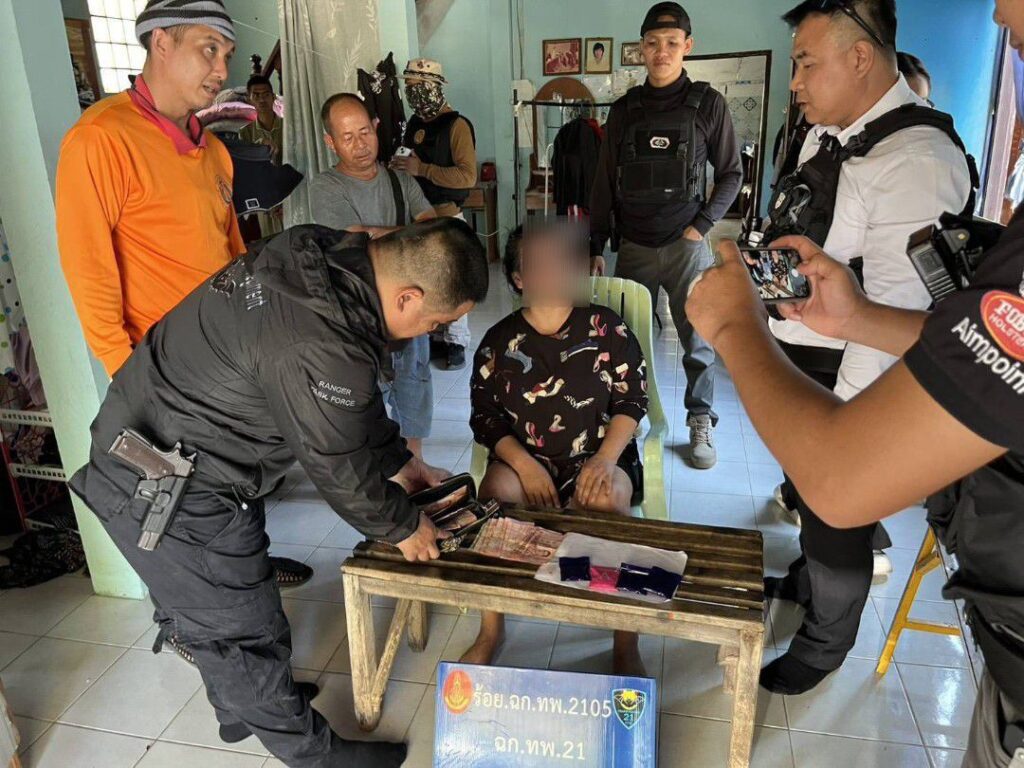 ผลการตรวจค้น สามารถจับกุม น.ส.ปรียาวัลย์ ไชยสัจ อายุ 45 ปี พร้อมของกลางยาเสพติดให้โทษประเภท 1 (ยาบ้า) เม็ดสีแดง จำนวน 777 เม็ด เม็ดสีเขียว จำนวน 8 เม็ด รวมทั้งสิ้น 785 เม็ด เงินสดจำนวน 9,780 บาท โดยเจ้าหน้าที่ได้บันทึกภาพและเสียงการจับกุมอย่างต่อเนื่องตามขั้นตอนกฎหมาย
