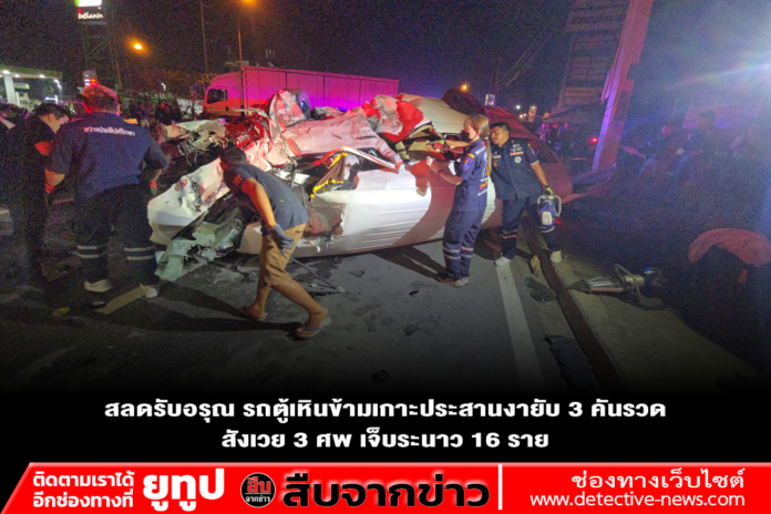 เกิดเหตุสลดรับอรุณเมื่อรถตู้รับส่งผู้โดยสารเหินข้ามเกาะกลางถนนมาชนประสานงากับรถตู้อีก 1 คัน และรถยนต์อเนกประสงค์อีก 1 คันทำให้มีผู้ได้รับบาดเจ็บทั้งหมด 16 ราย 3 ราย ใน 16 รายเสียชีวิต