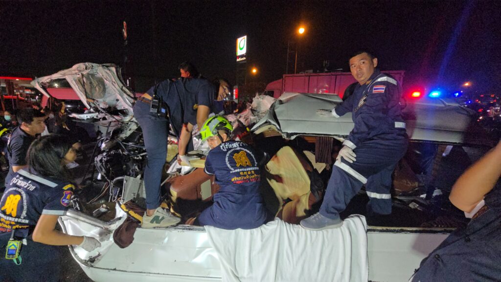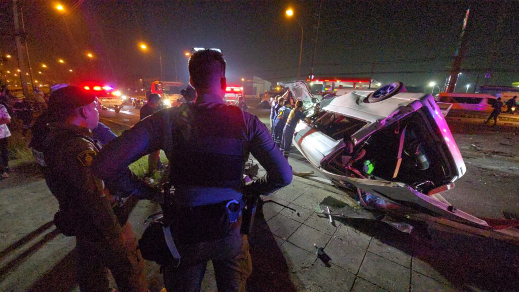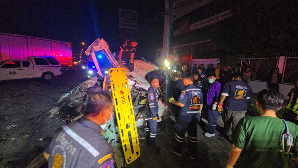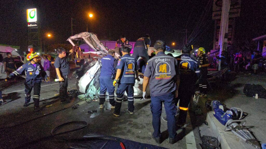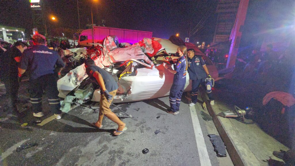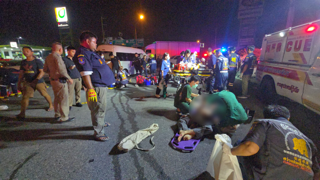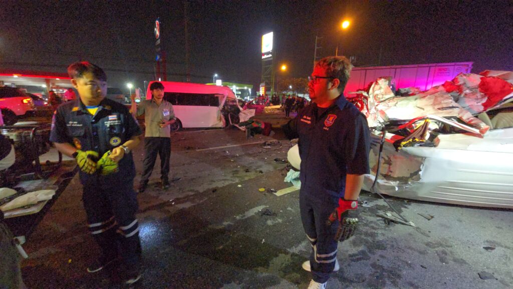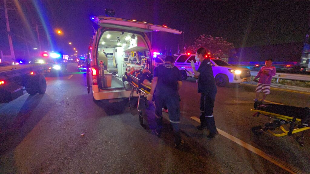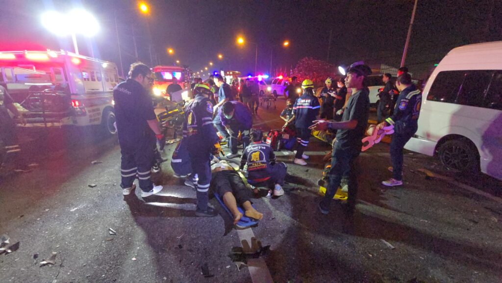 เมื่อเวลาประมาณ 05.00 น.วันนี้ 19 กุมภาพันธ์ 2569 ศูนย์วิทยุแจ้งเหตุหน่วยกู้ภัยสว่างประทีปศรีราชาจังหวัดชลบุรีได้รับแจ้งเหตุรถชนกันหลายรายบริเวณถนนสุขุมวิท ฝั่งขาเข้าพัทยา ก่อนถึงสะพานบ้านนา ตำบลทุ่งสุขลา อำเภอศรีราชา จังหวัดชลบุรี จึงประสานรถพยาบาลกู้ชีพโรงพยาบาลแหลมฉบัง รถพยาบาลกู้ชีพโรงพยาบาลสมิติเวช รถพยาบาลกู้ชีพ ลั่นทม โรงพยาบาลสมเด็จพระบรมราชเทวี ณ ศรีราชาเข้าร่วมตรวจสอบพร้อมเจ้าหน้าที่ตำรวจ สภ.แหลมฉบัง
