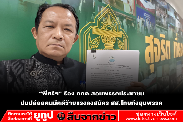 วันที่ 20 ก.พ.69 ที่สำนักงานคณะกรรมการการเลือกตั้ง ศูนย์ราชการฯ อาคารบี ชั้นสอง นายศรีสุวรรณ จรรยา ผู้นำองค์กรรักชาติ รักแผ่นดิน ได้เตินทางมายื่นคำร้องต่อคณะกรรมการการเลือกตั้ง (กกต.)และนายทะเบียนพรรคการเมือง เพื่อขอให้สืบสวนหรือไต่สวนเอาผิดพรรคประชาชน กรณีสมาชิกของพรรคและผู้สมัคร สส.เขต 1 จ.มหาสารคาม ถูกศาลฎีกามีคำพิพากษาฐานข่มขืนกระทำชำเรา ต้องจำคุก 2 ปี 8 เดือนนั้น ถือว่าพรรคประชาชนกระทําการอันเข้าข่ายส่งเสริม สนับสนุนให้ผู้สมัคร สส.ดังกล่าว กระทําการที่เป็นการคุกคามความสงบเรียบร้อยหรือศีลธรรมอันดีของประชาชน ซึ่งเป็นข้อห้ามตามมาตรา 45 แห่ง พรป.ว่าด้วยพรรคการเมือง 2560 หรือไม่ ทั้ง ๆ ที่มีผู้ที่เตือนมานานแล้ว หากเข้าข่ายให้เสนอเรื่องไปยังศาลรัฐธรรมนูญเพื่อวินิจฉัยยุบพรรค ตามมาตรา 92(3)ต่อไป