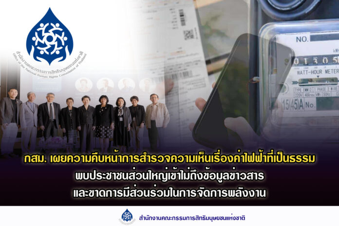 2.กสม. เผยความคืบหน้าการสำรวจความเห็นเรื่องค่าไฟฟ้าที่เป็นธรรม พบประชาชนส่วนใหญ่เข้าไม่ถึงข้อมูลข่าวสารด้านต้นทุนค่าไฟฟ้าและขาดการมีส่วนร่วมในการจัดการด้านพลังงาน