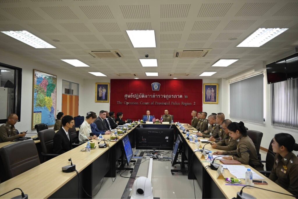 เมื่อเวลา 13.00 น. วันที่ 20 กุมภาพันธ์ 2569 ณ ห้องประชุม ศปก.ภ.2 พล.ต.ท.ฉัตรชัย สุรเชษฐพงษ์ ผู้บัญชาการตำรวจภูธรภาค 2 พร้อมด้วยคณะผู้บังคับบัญชาระดับสูงในสังกัด ร่วมให้การต้อนรับ คุณลูแฟม รองผู้ช่วยทูต หน่วยป้องกันกองกำลังสหรัฐฯ สถานเอกอัครราชทูตสหรัฐอเมริกาประจำประเทศไทย และคณะ ในโอกาสเดินทางเข้าพบเพื่อสานสัมพันธ์และบูรณาการการทำงานร่วมกัน