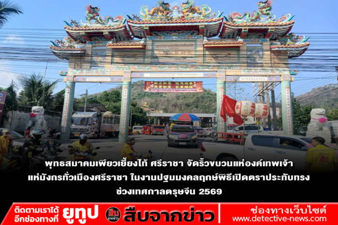 พุทธสมาคมเพียวเยี้ยงไท้ ศรีราชา จัดริ้วขบวนแห่องค์เทพเจ้า-แห่มังกรทั่วเมืองศรีราชา ในงานปฐมมงคลฤกษ์พิธีเปิดตราประทับทรงช่วงเทศกาลตรุษจีน 2569 เพื่อให้ประชาชนชาวไทยเชื้อสายจีนได้ตั้งโต๊ะไหว้เสริมสิริมงคล