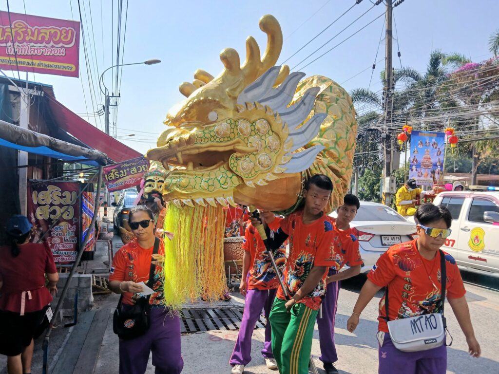 โดยชาวไทยเชื้อสายจีน มีความเชื่อว่า องค์เทพเจ้าแต่ละองค์จะเสริมดวงชะตา ให้ดีขึ้น ส่วนมังกรและสิงโต เป็นสัตว์ของเทพเจ้าที่ประชาชนเชื้อสายจีนเชื่อกันว่าเป็นสัตว์ศักดิ์สิทธิ์ที่ผู้ใดได้ทำบุญ สักการะ หรือกราบไหว้แล้วจะทำให้ครอบครัวจะมีแต่ความสุข ป้องกันภัยอันตราย ส่งเสริมดวงชะตาชีวิตและหน้าที่การงานให้เจริญรุ่งเรืองยิ่งขึ้นไปอีกด้วย