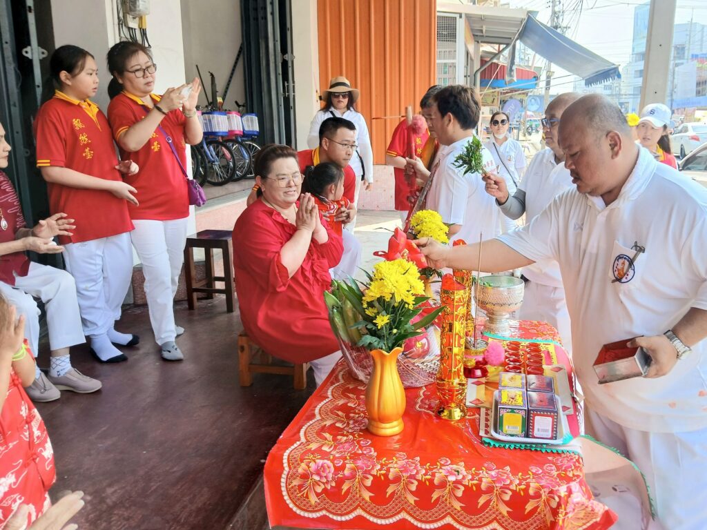 วันนี้ (21 ก.พ. 2569) ที่พุทธสมาคมเพียวเยี้ยงไท้ศรีราชา นายเจริญ จุรีกานนท์ นายกพุทธสมาคมเพียวเยี้ยงไท้ ศรีราชา พร้อมคณะฝ่ายทรงและคณะกรรมการพุทธสมาคมเพียวเยี้ยงไท้ ศรีราชา ถนนสายเก้ากิโล ม.3 ต.สุรศักดิ์ อ.ศรีราชา จ.ชลบุรี ได้จัดงานปฐมมงคลฤกษ์พิธีเปิดตราประทับทรง คุยเพ่งอังกี้ น้อมรับเหล่าปวงวิสุทธิเทพและสิ่งศักดิ์สิทธิ์เสด็จลงจากสวรรค์ พร้อมออกแห่เจิมใบชาทิพย์ (ฉู่แต้) ประทานพรสิริมงคลให้แก่สาธุชนรอบเมืองศรีราชา ในช่วงเทศกาลตรุษจีน ประจำปี 2569โดยมีขบวนแห่องค์เทพเจ้าไปที่ถนนสายเก้ากิโลเข้าไปยังรอบตลาดศรีราชาเพื่อให้ประชาชนได้ตั้งโต๊ะกราบไหว้ขอพรองค์เทพเจ้ากันซึ่งก็ได้มีประชาชนชาวไทยที่มีเชื้อสายจีนได้ตั้งโต๊ะกันเป็นจำนวนมากในครั้งนี้
