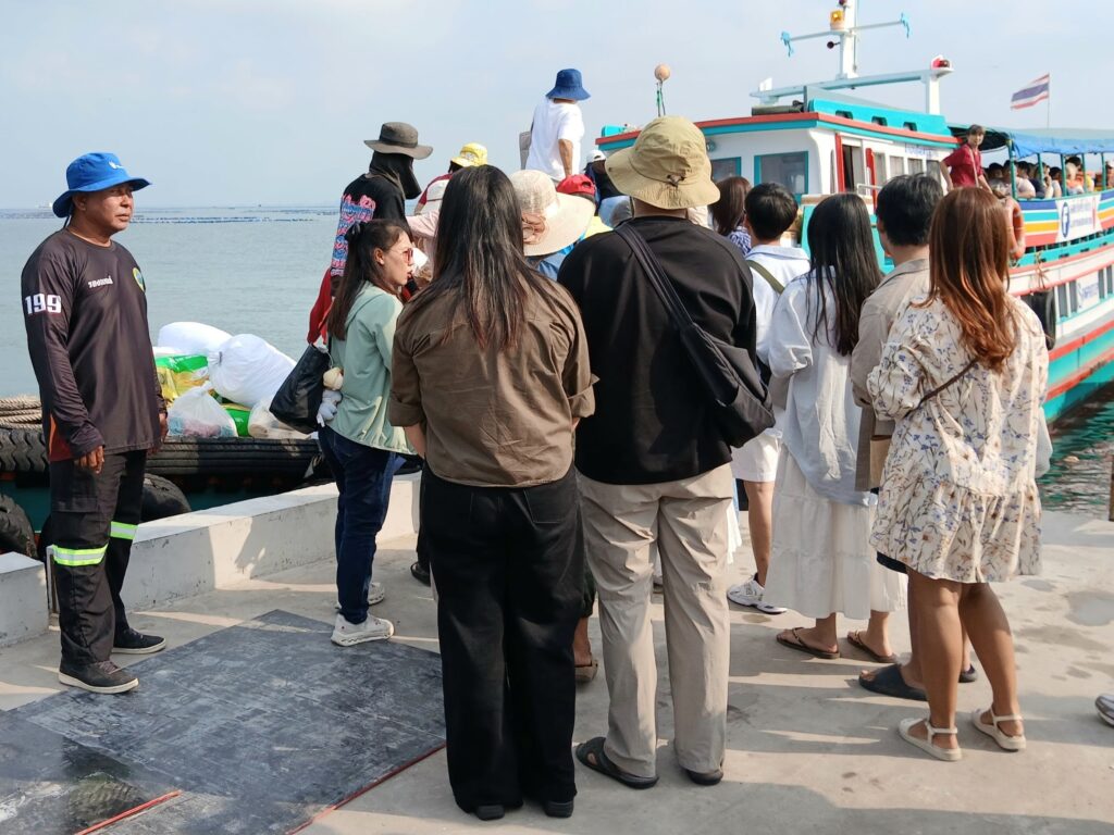 โดยมีทางเจ้าหน้าที่ตำรวจน้ำศรีราชา ,เจ้าหน้าที่กรมเจ้าท่า และเจ้าหน้าที่บรรเทาสาธารณภัยดับเพลิงเทศบาลเมืองศรีราชา มาร่วมอำนวยความสะดวกให้แก่นักท่องเที่ยวเดินทางมาลงเรือ รวมทั้งควบคุมจำนวนผู้โดยสารไม่ให้เกินจำนวนผู้โดยสารตามที่กฎหมายกำหนด และผู้โดยสารต้องสวมใส่เสื้อชูชีพทุกคนก่อนให้เรือออกทุกเที่ยวแต่ละลำเพื่อความปลอดภัย…