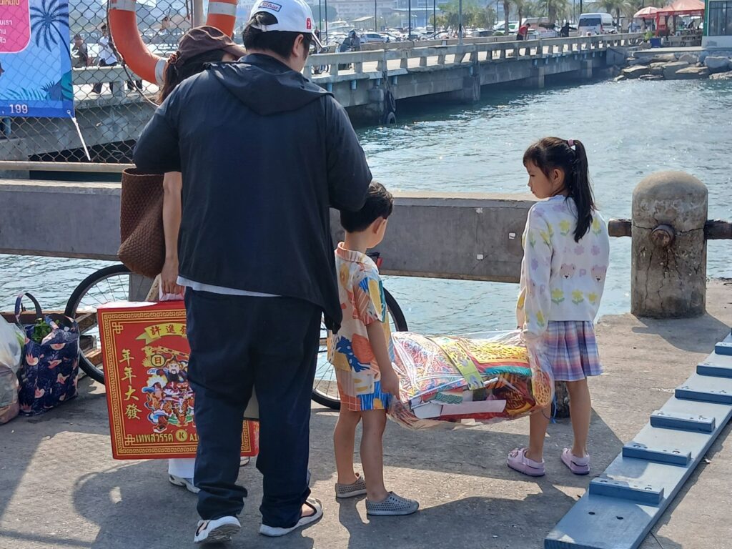 ผู้สื่อข่าวได้ไปสำรวจบรรยากาศบริเวณท่าเทียบเรือเกาะลอย อ.ศรีราชา จ.ชลบุรี ซึ่งเป็นท่าเรือข้ามฟากศรีราชา-เกาะสีชัง พบว่า คึกคักเป็นอย่างมาก โดยมีทั้งนักท่องเที่ยวชาวไทยเชื้อสายจีนทั้งในจังหวัดชลบุรี และนักท่องเที่ยวต่างพื้นที่พากันสวมเสื้อผ้าสีแดง นำชุดกี่เพ้า, กระดาษเงิน, กระดาษทอง, ประทัด, ดอกไม้สด และผลไม้สด เดินทางมาใช้บริการเรือข้ามฟากเพื่อไปกราบไหว้สักการะขอพรเจ้าพ่อเขาใหญ่ เพื่อความเป็นสิริมงคลในช่วงเทศกาลตรุษจีน ทำให้ผู้ประกอบการเรือโดยสารต้องเพิ่มเที่ยวเดินเรือให้เพียงพอต่อนักท่องเที่ยวที่เดินทางมาสักการะเจ้าพ่อเขาใหญ่เกาะสีชัง…