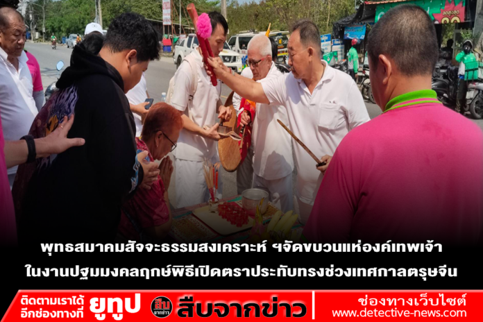 พุทธสมาคมสัจจะธรรมสงเคราะห์ ฯจัดขบวนแห่องค์เทพเจ้า ในงานปฐมมงคลฤกษ์พิธีเปิดตราประทับทรงช่วงเทศกาลตรุษจีน เพื่อให้ประชาชนชาวไทยเชื้อสายจีนได้ตั้งโต๊ะไหว้เสริมสิริมงคล