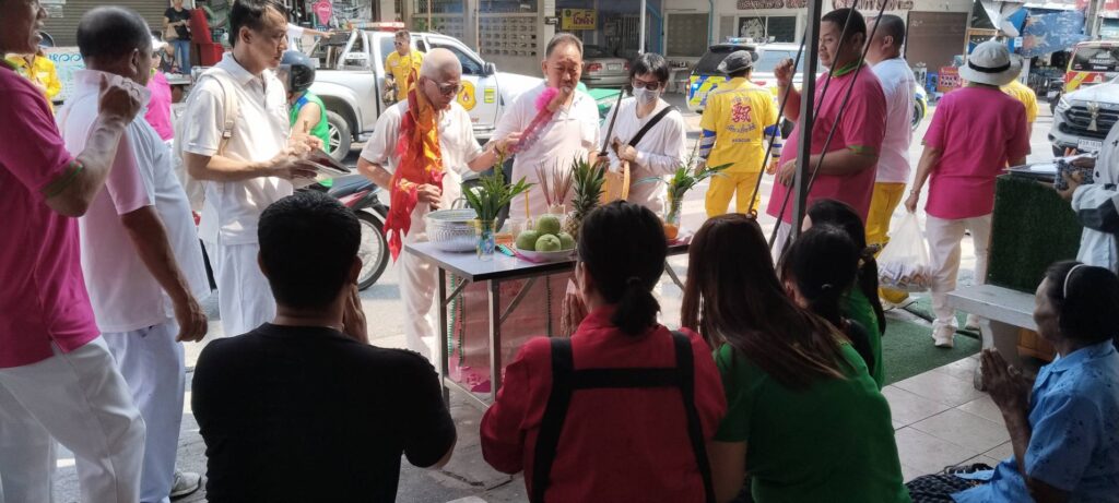 เมื่อเลา 10.39 น. (22ก.พ.2569) นายชัยจิตร รัฐขจร นายกพุทธสมาคมสัจจะธรรมสงเคราะห์ พ้งไล้ซาจับซาเซียวเกาะ โรงเจบึงไร่1และ นายมนตรี โสภณารมณ์ อุปนายกพุทธสมาคมสัจจะธรรมสงเคราะห์ (พ้งไล้ซาจับซาเซียวเกาะฯ พร้อมคณะฝ่ายทรงจากหลายมูลนิธิและคณะกรรมการพุทธสมาคมสัจจะธรรมสงเคราะห์ ฯได้จัดงานปฐมมงคลฤกษ์พิธีเปิดตราประทับทรง คุยเพ่งอังกี้ น้อมรับเหล่าปวงวิสุทธิเทพและสิ่งศักดิ์สิทธิ์เสด็จลงจากสวรรค์ พร้อมออกแห่เจิมใบชาทิพย์ (ฉู่แต้) ประทานพรสิริมงคลให้แก่สาธุชน ในช่วงเทศกาลตรุษจีน ประจำปี 2569พร้อมพิธีออกแห่ประพรมน้ำมนต์เพื่อความเป็นสิริมงคลในเทศกาลตรุษจีนขึ้นปีใหม่ให้กับสาธุชนทุกๆท่านและครอบครัวมีการประกอบพิธีประทับทรงอัญเชิญกระถางธูปองค์โป๊ยเซียนโจวซือ, องค์หลวงเตี่ยเจียงกุงเอี้ยกง, องค์ฮ้อเอี๊ยฮุ้งเซี่ยโจ้ว องค์พระอวโลกิเตศวรกวนอิมโพธิสัตว์ ออกแห่เจิมใบชาทิพย์ (ฉู่เต้) ณ ตลาดห้วยเล็ก, ตลาดเครือสหพัฒน์, ตลาดบึงไร่1, ตลาดปากร่วม ประพรมน้ำมนต์เพื่อความเป็นสิริมงคล โดยมีริ้วขบวนอันสวยงามฯ