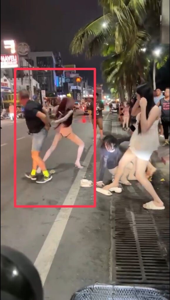 ล่าสุดมีความคืบหน้าในเรื่องนี้ เกี่ยวกับคนร้ายที่ยังหลบหนีการจับกุม โดยพบว่า หลังจากที่กลุ่มสาวประเภท 2 ก่อเหตุทำร้ายนักท่องเที่ยวชาวเยอรมัน เมื่อช่วงเวลาประมาณเที่ยงคืน ของวันที่ 24 กุมภาพันธ์ และในเวลาต่อมาช่วงประมาณตี 3 ( ถัดมาแค่ 2 ชั่วโมงครึ่ง ) 1 ใน 2 คนร้าย ชื่อว่า “เฟื่องฟ้า” (จุดเด่นคือทาครีมพอกตัวจนขาวโพน) ที่ยังหลบหนีอยู่ และ เป็นบุคคลที่ปรากฏในคลิป ทำร้ายนักท่องเที่ยวชาวเยอรมัน โดยมีพฤติกรรม ดึงกระเป๋าเงินออกจากกระเป๋ากางเกงของนักท่องเที่ยวชาวเยอรมัน จนกระเป๋าเงินร่วงตกลงไปกับพื้น ซึ่งจากแนวทางการสืบสวนพบ หลังจากที่ นายเฟื่องฟ้า ก่อเหตุทำร้ายนักท่องเที่ยวชาวเยอรมัน ยังไปก่อเหตุ อาละวาดทำลายข้าวของภายในบ้านพลูวิลล่า ย่านตำบลห้วยใหญ่ อ.บางละมุง จ.ชลบุรี