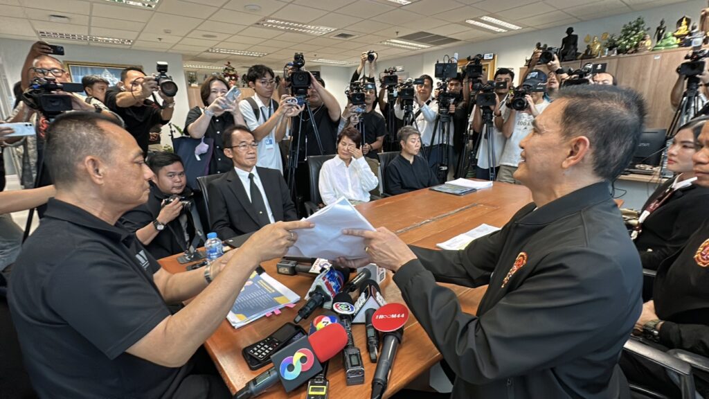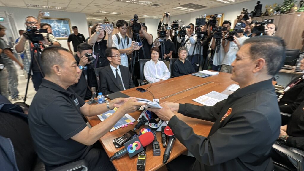 เมื่อเวลา 10.30 น. วันที่ 25 ก.พ. ที่กองบังคับการป้องกันปราบปรามการทุจริตและประพฤติมิชอบ (บก.ปปป.) ชั้น 16 อาคารพิทักษ์สันติ กองบัญชาการตำรวจสอบสวนกลาง ถนนพหลโยธิน นายอนันต์ชัย ไชยเดช ประธานมูลนิธิทนายกองทัพธรรม พร้อมคณะ ได้เดินทางเข้าพบ พล.ต.ต.จรูญเกียรติ ปานแก้ว รอง ผบช.ก. หรือ “บิ๊กเต่า” เพื่อยื่นหนังสือร้องเรียนให้ดำเนินการตรวจสอบเส้นทางการเงินของ “พระครูนันทจรณธรรม” อดีตเจ้าอาวาสวัดสักใหญ่ ต.วัดชลอ อ.บางกรวย จ.นนทบุรี ว่าเข้าข่ายการกระทำความผิดตามประมวลกฎหมายอาญา มาตรา 147 และมาตรา 157 หรือไม่