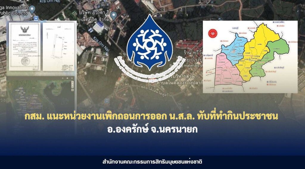 กสม. แนะหน่วยงานเพิกถอนการออก น.ส.ล. ทับที่ทำกินประชาชน อ.องครักษ์ จ.นครนายก – ชง ตร. ยกระดับมาตรการส่งเสริมและคุ้มครองสิทธิมนุษยชน ป้องกันการทรมานและการปฏิบัติที่ไม่เหมาะสมในสถานีตำรวจ