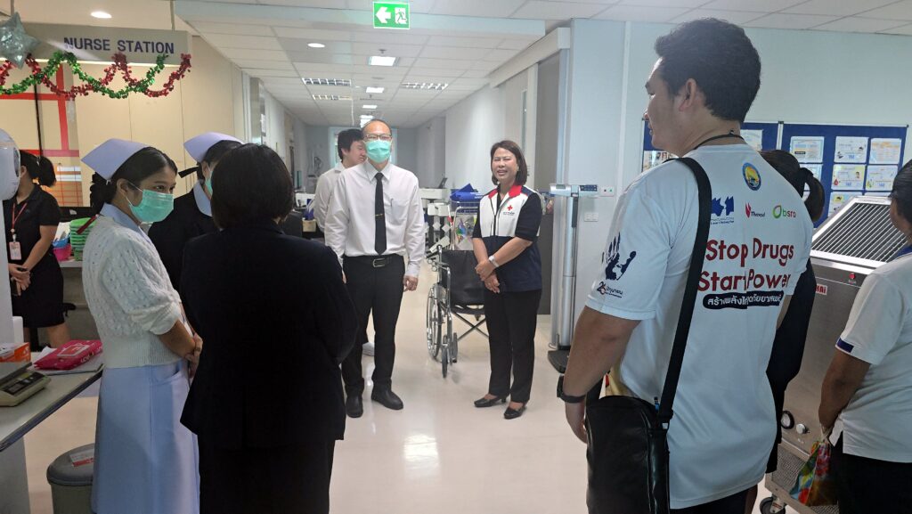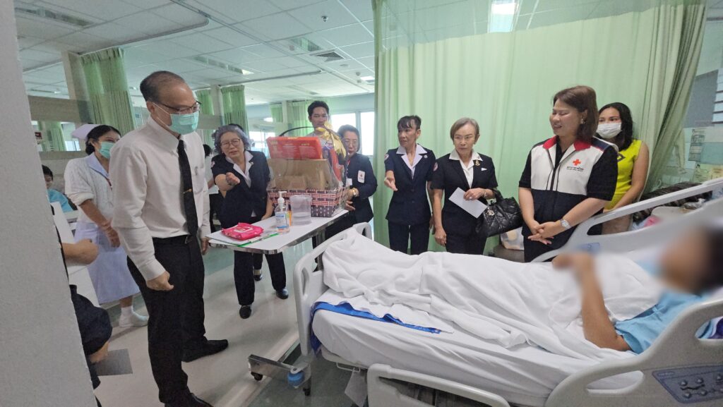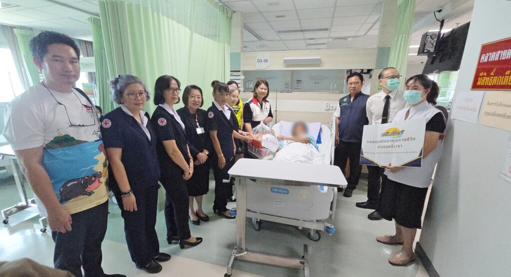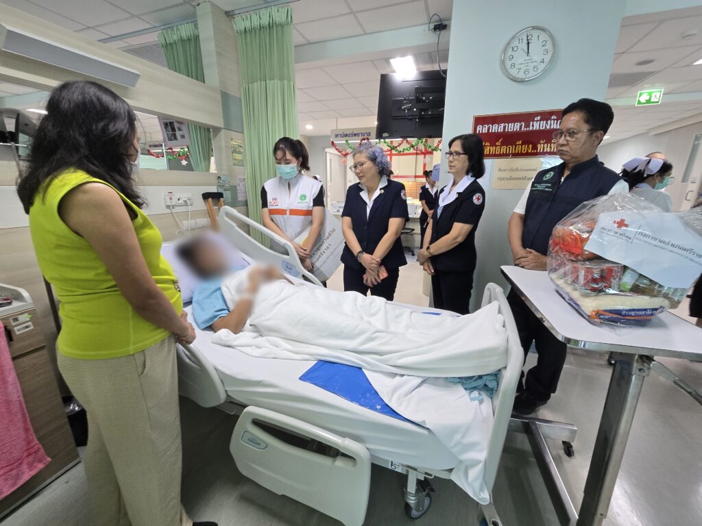 เมื่อเวลา 11.30 น. วันนี้ (26 ก.พ.2569) นางภัทรชนันท์ ผ่องผาด นายอำเภอศรีราชา พร้อมด้วยนายเมธี ส่งเสริม สาธารณสุขอำเภอศรีราชา ปลัดอำเภอ หัวหน้าฝ่ายความมั่นคง และสมาชิกกิ่งกาชาดอำเภอศรีราชา เดินทางเข้าเยี่ยม ด.ญ. เอ (นามสมมุติ) อายุ 14 ปี นักกีฬาโรงเรียน academy volley ball ของโรงเรียนแห่งหนึ่ง ต.หนองขาม อ.ศรีราชา จ.ชลบุรี กรณีพลัดตกอาคาร ซึ่งกำลังรักษาตัวอยู่ที่โรงพยาบาลสมเด็จพระบรมราชเทวี ณ ศรีราชา พร้อมทั้งได้มอบเงินจากกองทุนพัฒนาชีวิตอำเภอศรีราชา ( พชอ.) และกิ่งกาชาดอำเภอศรีราชา ร่วมมอบ ถุงยังชีพ พร้อมทั้งให้กำลังใจกับน้องนักเรียนอีกด้วย โดยมี นพ.สมยศ โล่ห์จินดาพงศ์ รองผู้อำนวยการโรงพยาบาลสมเด็จพระบรมราชเทวี ณ ศรีราชา ให้การต้อนรับ