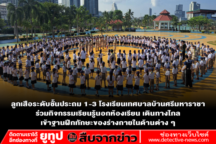 ที่ สวนสุขภาพเทศบาลเมืองศรีราชา โรงเรียนเทศบาลบ้านศรีมหาราชา ได้กิจกรรมลูกเสือระดับชั้นประถมศึกษาปีที่ 1-3 เป็นการเรียนรู้นอกห้องเรียน โดยมีคณะครู นิสิตฝึกสอน ได้นำลูกเสือระดับชั้นประถมศึกษาปีที่ 1-3 ร่วมกิจกรรม เดินทางไกล สร้างเสริมประสบการณ์ชีวิต ซึ่งกิจกรรมเริ่มเดินจากโรงเรียนเทศบาลบ้านศรีมหาราชา เข้าสวนสุขภาพเทศบาลเมืองศรีราชา โดยมีคุณครูให้ความรู้ถึงความสำคัญความเป็นมาของสวนสุขภาพ เพื่อสร้างเสริมประสบการณ์ของเด็กๆ จากสถานที่จริงรู้ถึงความเป็นอยู่ และประวัติของเมืองศรีราชา พร้อมให้ความรู้ถึงระบบนิเวศทางทะเลและบนชายฝั่ง ให้ความรู้ถึงสิ่งมีชีวิตทั้งพืช สัตว์ และสิ่งมีชีวิตขนาดเล็กที่อาศัยอยู่ในผืนน้ำ ร่วมถึงวิถีชุมชน วิถีคนเมือง และ วิถีชาวประมง เพื่อสร้างเสริมประสบการณ์ของเด็กๆ จากสถานที่จริง