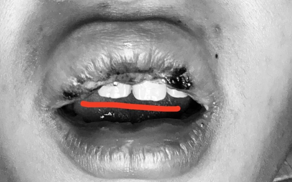 บาดแผลที่เห็นได้ชัด ฟันกระแทกจนเหล็กจัดฟันหลุด 1 ซี่ ฟันไม่เสมอกัน มีภาพเปรียบเทียบก่อน–หลังการถูกทำร้ายและอยู่ระหว่างรักษา