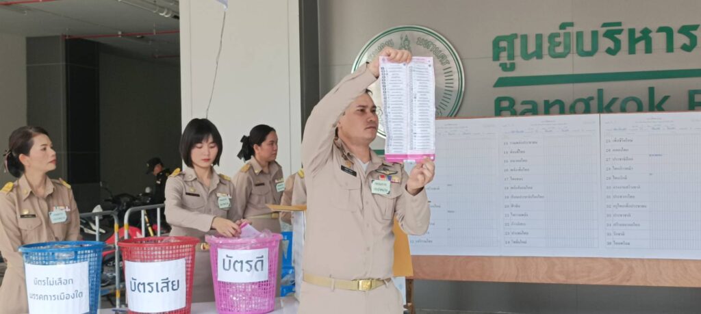 1 มี.ค. 2569 บรรยากาศนับคะแนน สส.บัญชีรายชื่อใหม่หน่วยที่ 74 เขตดินแดง เป็นไปด้วยความเรียบร้อย ผลคะแนนและจำนวนบัตรตรงตามการเลือกตั้งเมื่อ 8 ก.พ. ทุกประการ ไร้ปัญหา “มุดขีดคะแนน” หรือการทักท้วงจากผู้สังเกตการณ์
