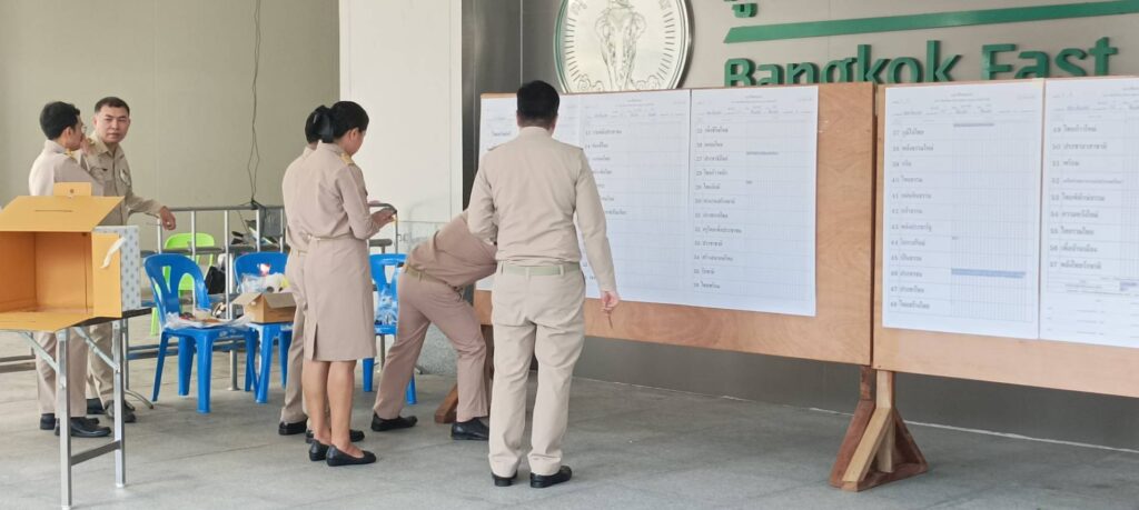 เมื่อเวลา 10.00 น. ที่สำนักงานเขตดินแดง คณะกรรมการการเลือกตั้ง (กกต.) ได้ดำเนินการนับคะแนนเลือกตั้ง สส. แบบบัญชีรายชื่อใหม่ ในหน่วยเลือกตั้งที่ 74 แขวงดินแดง เขตเลือกตั้งที่ 6 กรุงเทพมหานคร โดยมี นางปาณิสรา เนตรธารทอง ผอ.เขตดินแดง, นายธนิต ตันบัวคลี่ รองปลัดกรุงเทพมหานคร และเจ้าหน้าที่ระดับสูงจาก กกต. ร่วมสังเกตการณ์อย่างใกล้ชิด