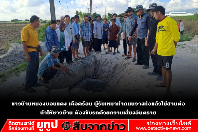 เมื่อเวลา 09.00 น. วันที่ 1 มีนาคม 2569 ผู้สื่อข่าวได้เดินทางไปยังบริเวณซอยศูนย์การเรียนรู้มาบเอื้อง หมู่ 1 ตำบลหนองบอนแดง อำเภอบ้านบึง จังหวัดชลบุรี พบชาวบ้านกว่า 50 คนกำลังรวมกลุ่มประท้วงถนนภายในซอยที่มีการซ่อมแซมงางท่อแล้วไม่มีการสานต่องานทำให้ชาวบ้านที่อาศัยอยู่ในซอยดังกล่าวเดือดร้อนหนัก จากการตรวจสอบถนนดังกล่าวตั้งแต่ปากซอยจนถึงในตัวชุมชนกว่า 700 เมตรที่มีการวางท่อเป็นแนวยาวสลับไปมา กลางถนนก็มีท่อที่วางอยู่มีเหล็กแหลมโผล่ ไม่มีป้ายกั้นหรือ สัญญาณไฟเตือน