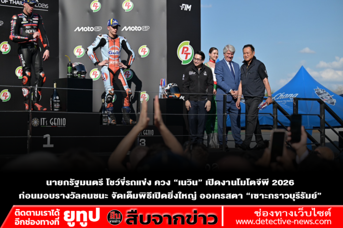 นายกรัฐมนตรี โชว์ขี่รถแข่ง ควง “เนวิน” เปิดงานโมโตจีพี 2026 ก่อนมอบรางวัลคนชนะ จัดเต็มพิธีเปิดยิ่งใหญ่ ออเครสตา “เซาะกราวบุรีรัมย์” เล่นเพลงชาติไทยกระหึ่มสนาม