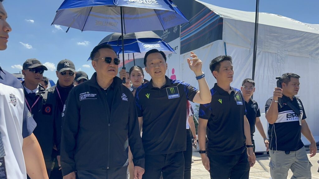 บุรีรัมย์ วันนี้ (1 มี.ค.) นายอนุทิน ชาญวีรกูล นายกรัฐมนตรี และรัฐมนตรีว่าการกระทรวงมหาดไทย พร้อมคณะ เดินทางมาถึงสนามบุรีรัมย์ อินเตอร์เนชั่นแนล เซอร์กิต อำเภอเมืองบุรีรัมย์ จังหวัดบุรีรัมย์ โดยได้เข้าเยี่ยมชมบูธของยามาฮ่าที่มีผู้บริหารของยามาฮ่าให้การต้อนรับและพาเดินชมบูธ โดยช่วงหนึ่งนายกฯ ได้ทดลองนั่งรถแข่ง ก่อนจะเดินต่อไปเยี่ยมชมบูธฮอตที่ตั้งอยู่ติดกัน ซึ่งมีนักแข่งมอเตอไซต์ชาวไทย คือ นายสมเกียรติ จันทรา สังกัดทีม LCR HONDA อยู่ จากนั้นได้เดินต่อไปเยี่ยมชมที่บูธดูคาติ พึที และช้าง เสร็จแล้วนายกฯพร้อมคณะได้นั่งรถกอล์ฟมายังห้องรับรอง