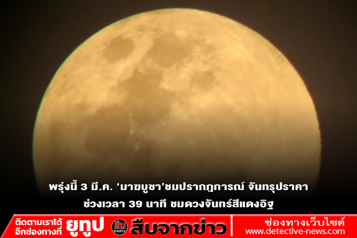 วันที่ 3 มี.ค.69 จะเกิดปรากฏการณ์ “จันทรุปราคาเต็มดวง” เวลาประมาณ 15.44-21.23 น. (เวลา ที่ กทม.) โดยช่วงเวลาที่สามารถสังเกตเห็นได้ในประเทศไทย จะเป็นช่วงคราสเต็มดวงพอดี