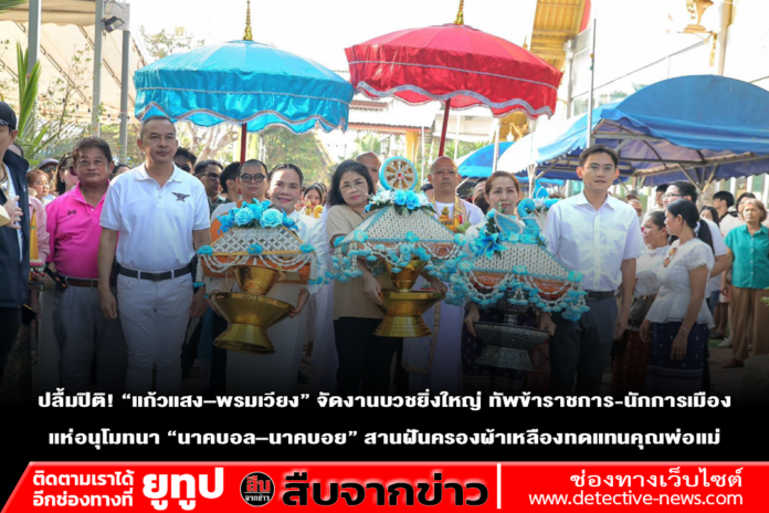 ครอบครัวแก้วแสง–พรมเวียง จัดพิธีอุปสมบท “ชยานนท์–ธีรพงค์” ณ วัดเขาบุญมีดาราราม บางละมุง ท่ามกลางข้าราชการ นักการเมืองท้องถิ่น ญาติสนิทมิตรสหาย ร่วมอนุโมทนาบุญ คับคั่ง