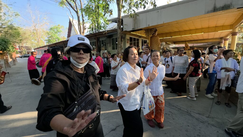 ทั้งนี้ก่อนนำนาคเข้าอุโบสถ ตามประเพณีนาคจะเดินเวียนประทักษิณ (เวียนขวา) รอบโบสถ์ เป็นการรำลึกว่า การอุปสมบทที่จะเกิดขึ้นเป็นไปด้วยความสุจริต ถูกต้องทั้งกาย วาจา ใจ โดยทางครอบครัวได้จัดพิธีแห่นาค รอบอุโบสถถึง 5 รอบ พร้อมทั้งนำเงินมาโปรยทานทั้งเหรียญและแบงค์