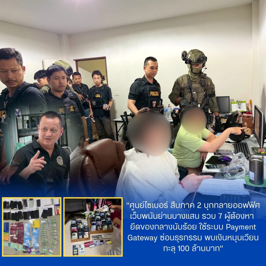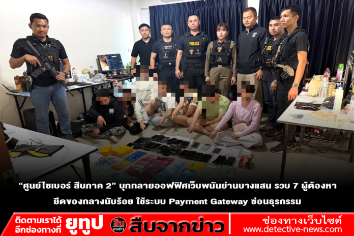 “ศูนย์ไซเบอร์ สืบภาค 2″ บุกทลายออฟฟิศเว็บพนันย่านบางแสน รวบ 7 ผู้ต้องหา ยึดของกลางนับร้อย ใช้ระบบ Payment Gateway ซ่อนธุรกรรม พบเงินหมุนเวียนทะลุ 100 ล้านบาท