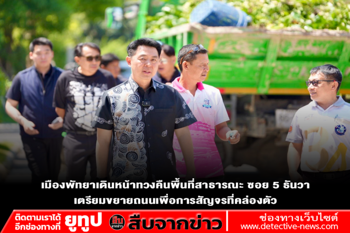 (4 มี.ค.69) เวลา 16.00 น. นายปรเมศวร์ งามพิเชษฐ์ นายกเมืองพัทยา พร้อมด้วยนายมาโนช หนองใหญ่ รองนายกเมืองพัทยา และทีมเลขานุการนายกเมืองพัทยา ลงพื้นที่ติดตามการทวงคืนพื้นที่สาธารณะบริเวณซอย 5 ธันวา โดยมีหัวหน้าส่วนราชการสำนักช่าง ร่วมให้ข้อมูล