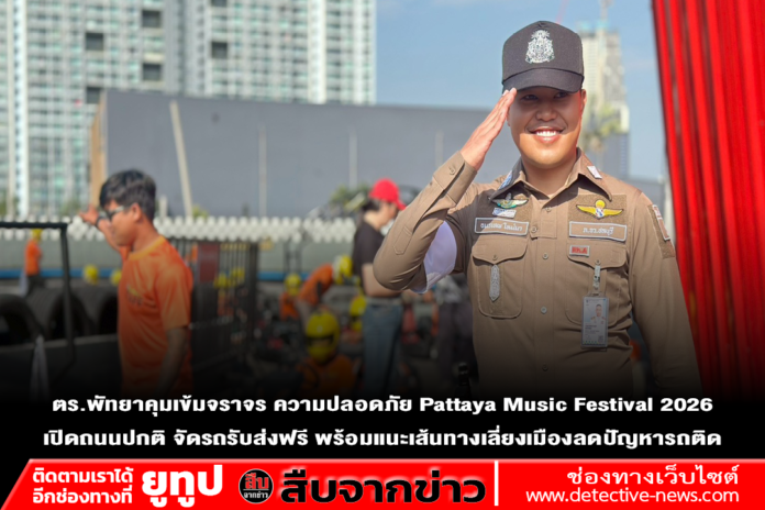 พ.ต.ท.อมรเทพ ใหม่มา สารวัตรจราจร สภ.เมืองพัทยา เปิดเผยถึงมาตรการอำนวยความสะดวกด้านการจราจรในช่วงการจัดงานเทศกาลดนตรี Pattaya Music Festival 2026 ซึ่งกำหนดจัดขึ้นในทุกวันศุกร์และวันเสาร์ของเดือนมีนาคม โดยเริ่มตั้งแต่วันที่ 6–7 มีนาคม เป็นต้นไป บริเวณชายหาดพัทยา สำหรับการจัดการจราจรในปีนี้ จะ เปิดการจราจรตามปกติ แตกต่างจากบางปีที่ผ่านมา ที่มีการปิดถนนบางช่วง จึงขอให้ประชาชนและนักท่องเที่ยว วางแผนการเดินทางล่วงหน้า เพื่อหลีกเลี่ยงการจราจรหนาแน่น พร้อมทั้งขอความร่วมมือใช้บริการขนส่งสาธารณะ ซึ่งมีการจัดรถบริการรับ–ส่งฟรี เพื่ออำนวยความสะดวกแก่ผู้เข้าร่วมงาน