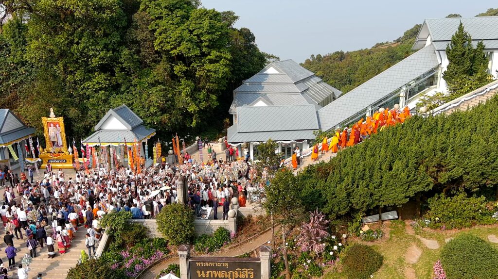 วันที่ 6 มี.ค.69 ผู้สื่อข่าวรายงานว่า ที่พระมหาธาตุนภเมทนีดล พระมหาธาตุนภพลภูมิสิริ ดอยอินทนนท์ อำเภอจอมทอง จังหวัดเชียงใหม่ พล.อ.อ.เสกสรร คันธา ผู้บัญชาการทหารอากาศ (ผบ.ทอ.ผป มอบหมายให้ พล.อ.อ.บุญเลิศ อันดารา ที่ปรึกษาพิเศษกองทัพอากาศ เป็นประธานในพิธี ในกิจกรรม “INTHANON HARMONY ร้อยรวมศรัทธา เหนือฟ้าอินทนนท์” เพื่อสืบสานประเพณีอันดีงามและรวบรวมพลังศรัทธาจากพุทธศาสนิกชนทั่วภาคเหนือ