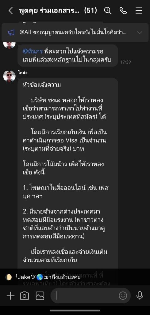 นาย เอ. ผู้เสียหายเล่าว่า ไปรู้จักบริษัทดังกล่าวจากเพจ Facebook ที่มีการโฆษณาว่า สามารถประสานกับนายจ้างที่ประเทศออสเตรเลียในการหาแรงงานไทยไปทำงาน จึงติดต่อไปสอบถาม ทางบริษัทยืนยันว่าเคยพาคนไทยไปทำงานแล้วหลายคน โดยมีค่าดำเนินการหัวละ 59,999 บาท แต่จะต้องทำตามขั้นตอนที่บริษัทกำหนดก่อนคือทำทีว่าเดินทางไปท่องเที่ยวในประเทศเวียดนามก่อน เป็นเวลา 3 วัน 2 คืน เพื่อให้หนังสือเดินทางมีหลักฐานการเดินทาง จะได้ดูน่าเชื่อถือในการขอวีซ่ากับทางสถานทูตออสเตรเลีย เหยื่อที่หลงเชื่อก็ยอมทำตาม ทั้งที่ไม่ได้อยากไปเที่ยวที่ประเทศเวียดนามเลย เพราะอยากไปทำงานที่ประเทศออสเตรเลียมากกว่า จึงทำให้ยิ่งน่าเชื่อถือว่าทางบริษัทดังกล่าวนั้นน่าจะพาพวกตนไปทำงานที่ประเทศออสเตรเลียได้