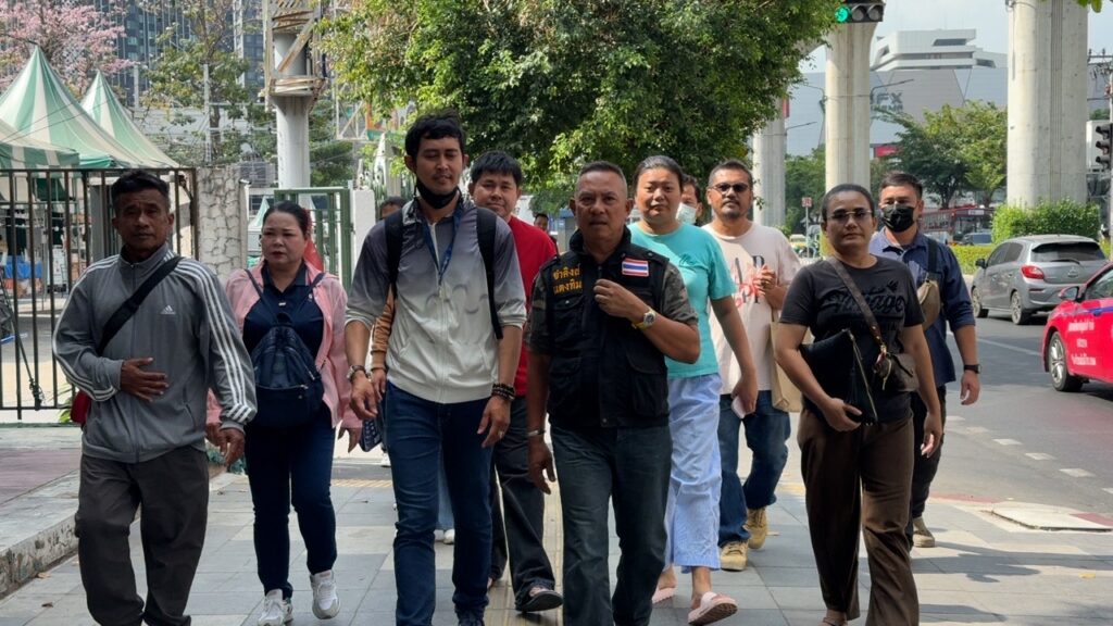 เวลา 10.30 น. วันที่ 6 มี.ค.69 ที่ด้านหน้าแดนเนรมิตรเก่า ริมฟุตบาท จ่าคิงส์ แตงทิม สะพานใหม่ พาผู้เสียหายเกือบ 30 คน เข้าร้องทุกข์ต่อพนักงานสอบสวนกองบัญชาการตำรวจสอบสวนกลาง เพื่อเอาผิดกับบริษัททัวร์แห่งหนึ่งจังหวัดปทุมธานี ที่หลอกลวงว่าจะพาไปทำงานสวนผลไม้ในประเทศออสเตรเลีย แถมรับรองว่าได้ไปแน่นอน เพราะได้ส่งคนไทยไปทำงานหลายคนแล้ว