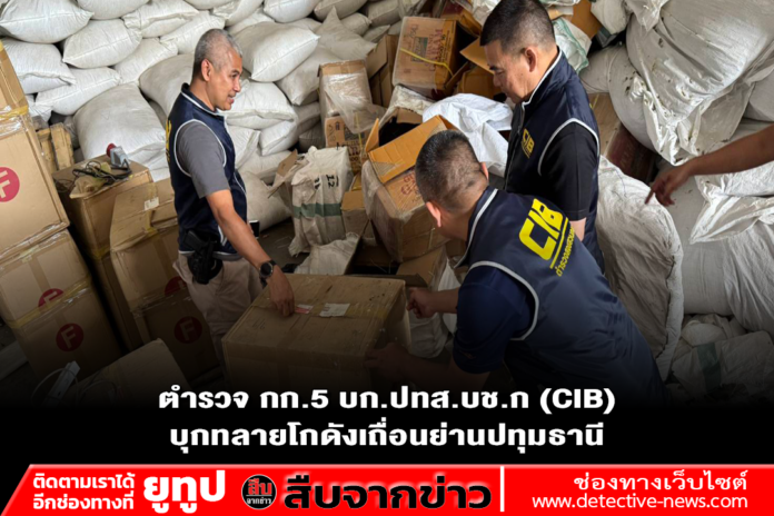 วันนี้ เจ้าหน้าที่ตำรวจ กก.5 บก.ปทส. ได้นำหมายค้น ศาลจังหวัดธัญบุรี เข้าตรวจค้น ผลการตรวจค้น พบสิ่งของที่อยู่ภายในโกดัง ดังนี้