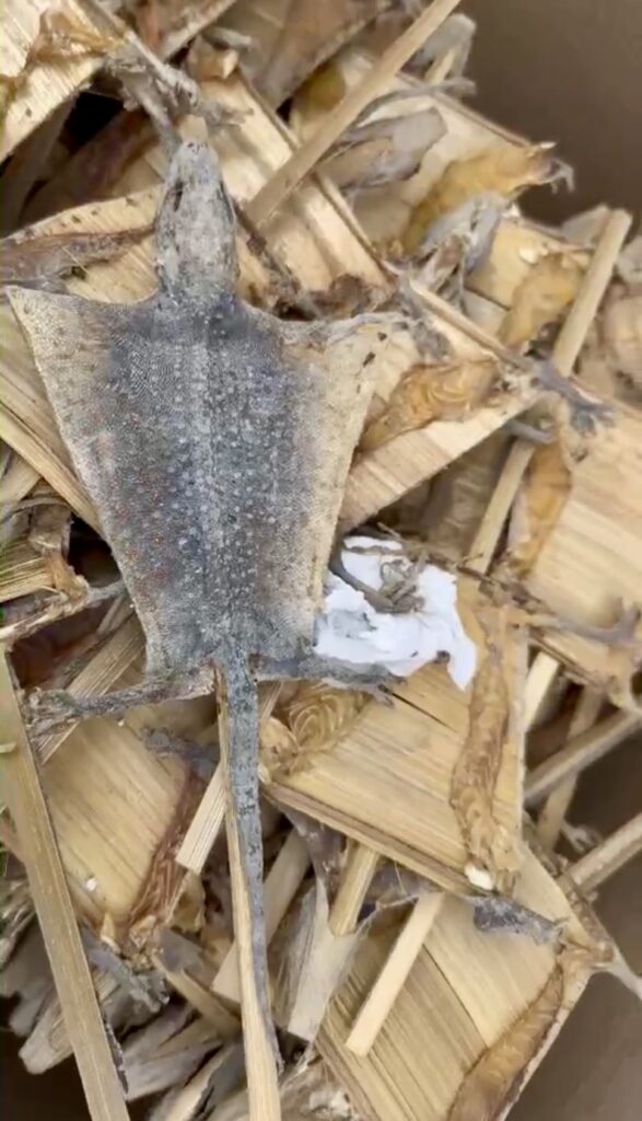 1.ซากตุ๊กแกแห้ง บรรจุอยู่ในกล่องกระดาษ กล่องละประมาณ 300 ตัว หนักประมาณ 10 กก. จำนวน 414 กล่อง รวมหนักประมาณ 4,140 กก. จำนวนซากตุ๊กแกทั้งหมดประมาณ 124,200 ตัว