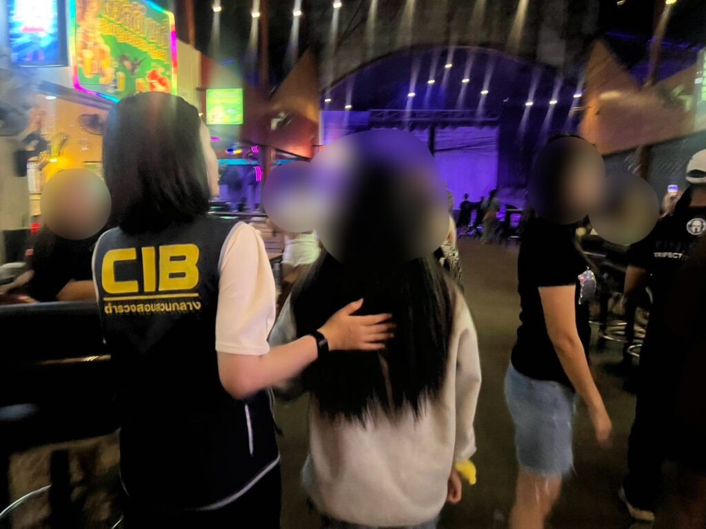 ต่อมาเจ้าหน้าที่ตำรวจ กก.3 บก.ปคม. พร้อมด้วย เจ้าหน้าที่ตำรวจ กก.สส.ภ.จว.อุดรธานี, สภ.เมืองอุดรธานี , เจ้าหน้าที่พัฒนาสังคมและความมั่นคงของมนุษย์จังหวัดอุดรธานี และ เจ้าหน้าที่ของมูลนิธิเดสทินี่ เรสคิว ได้ร่วมกันเข้าช่วยเหลือเหยื่อจากการค้ามนุษย์ จำนวน 2 คน คือ น.ส.หนึ่ง (นามสมมุติ) อายุ 15 ปี และ น.ส.สอง (นามสมมุติ) อายุ 15 ปี ได้ที่โรงแรมแห่งหนึ่งใกล้กับร้านฯ ซึ่งห่างประมาณ 50 เมตร และได้เข้าทำการตรวจสอบร้านบาร์ดังกล่าวพบว่า มี เด็กสาวอีก 2 คน คือ น.ส.สาม (นามสมมุติ) อายุ 15 ปี, น.ส.สี่ (นามสมมุติ) อายุ 15 ปี, น.ส.ห้า (นามสมมุติ) อายุ 16 ปี และ น.ส.หก (นามสมมุติ) อายุ 16 ปี คอยนั่งบริการ ปรนนิบัติ และร่วมนั่งดื่มกินเครื่องดื่มแอลกอฮอล์กับลูกค้าผู้มาใช้บริการภายในร้าน จากการตรวจสอบพบว่ามี นายสมพรฯ อายุ 45 ปี, นายสุพัฒนากรณ์ฯ อายุ 58 ปี เป็นเจ้าของร้าน เจ้าหน้าที่ตำรวจจึงได้แจ้งข้อกล่าวหา และจับกุมผู้ต้องหาทั้งสองราย ส่ง พงส.กก.3 บก.ปคม. ดำเนินคดี และได้ให้เจ้าหน้าที่ พัฒนาสังคมและความมั่นคงของมนุษย์ จังหวัดอุดรธานี ได้ร่วมคัดแยกและช่วยเหลือเหยื่อจากการค้ามนุษย์ เพื่อคุ้มครองสิทธิและฟื้นฟูสภาพจิตใจ และได้ดำเนินการส่งเด็กสาวทั้ง 6 คน เข้าคุ้มครองบ้านพักเด็กและครอบครัวจังหวัดอุดรธานี ต่อไป