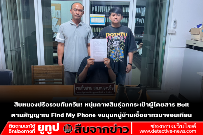 อย่างไรก็ตาม ผู้เสียหายได้ใช้ระบบติดตาม Find My Phone เพื่อติดตามตำแหน่งโทรศัพท์มือถือที่อยู่ในกระเป๋า จนสามารถประสานเจ้าหน้าที่ตำรวจชุดสืบสวน สภ.หนองปรือ เข้าตรวจสอบ