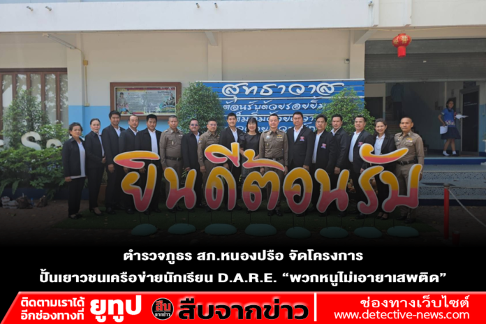 10 มีนาคม 2569 พ.ต.อ.ณัฐพล ผ่องสุขกุล ผู้กำกับการสถานีตำรวจภูธรหนองปรือ เปิดเผยว่า สถานีตำรวจภูธรหนองปรือได้จัดกิจกรรม โครงการการศึกษาเพื่อต่อต้านการใช้ยาเสพติดในเด็กนักเรียน เครือข่ายนักเรียน D.A.R.E. หรือ ครูแดร์ (Drug Abuse Resistance Education) ตามแนวทางการรณรงค์ประชาสัมพันธ์เนื่องในวันต่อต้านยาเสพติดโลก ประจำปี 2569 ภายใต้กรอบแนวคิดและคำขวัญว่า“รวมพลังไทย สร้างครอบครัว ชุมชนอุ่นใจ พ้นภัยยาเสพติด โดยจัดขึ้น ณ ห้องประชุมโรงเรียนวัดสุทธาวาส มีเยาวชนระดับชั้นประถมศึกษาปีที่ 5 จากโรงเรียนวัดสุทธาวาสเข้าร่วมกิจกรรมจำนวนกว่า 295 คน เพื่อสร้างความรู้ ความเข้าใจ และปลูกฝังจิตสำนึกในการป้องกันและต่อต้านยาเสพติดตั้งแต่วัยเยาว์