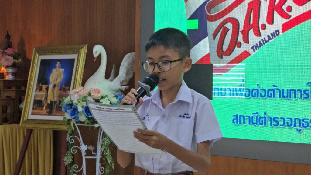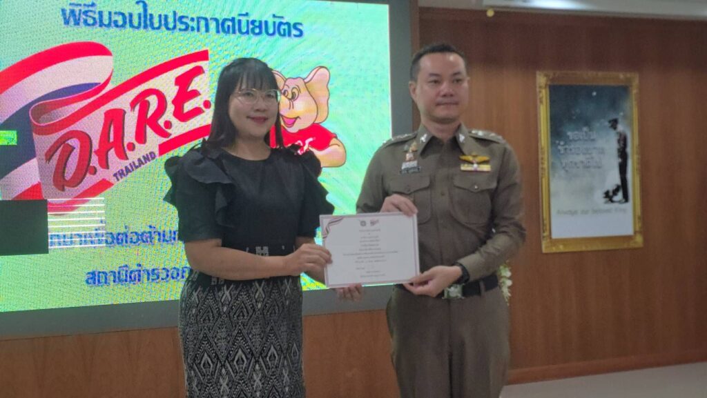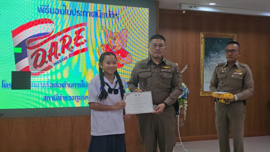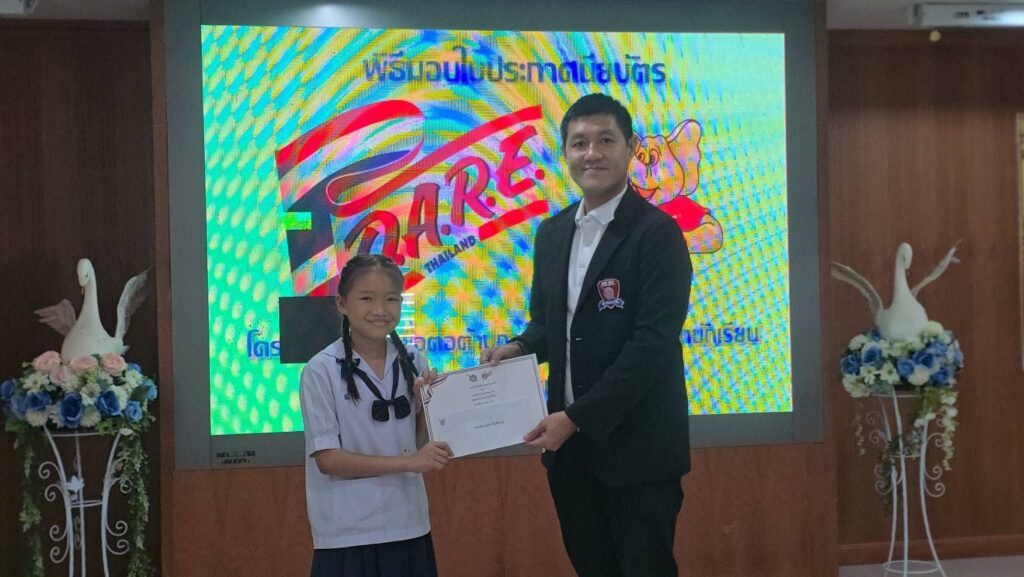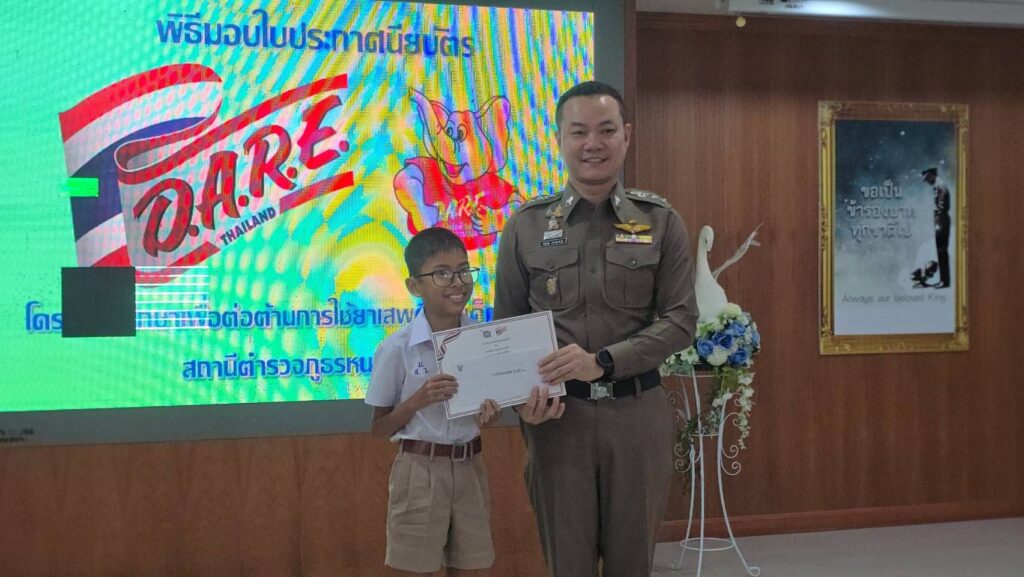 สำหรับโครงการ D.A.R.E. ก่อตั้งขึ้นเมื่อเดือนกันยายน ปี ค.ศ.1983 (พ.ศ.2526) โดยกรมตำรวจเมืองลอสแอนเจลิส ประเทศสหรัฐอเมริกา ร่วมกับเขตการศึกษาเมืองลอสแอนเจลิส เป็นหลักสูตรป้องกันยาเสพติดที่พัฒนาโดยนักวิชาการด้านการศึกษา และดำเนินการสอนโดยเจ้าหน้าที่ตำรวจในเครื่องแบบ หรือที่เรียกว่า “ตำรวจ D.A.R.E.” โดยมีเป้าหมายเพื่อลดและป้องกันการใช้สุรา บุหรี่ และยาเสพติด รวมถึงลดพฤติกรรมความรุนแรงในกลุ่มเยาวชน ประเทศไทยได้นำโครงการดังกล่าวมาใช้ตั้งแต่ปี พ.ศ.2542 โดยสำนักงานตำรวจแห่งชาติ มอบหมายให้กองบัญชาการตำรวจปราบปรามยาเสพติดเป็นหน่วยงานรับผิดชอบหลัก ก่อนจะนำมาปรับรูปแบบให้เหมาะสมกับบริบทของสังคมและวัฒนธรรมไทย ทั้งนี้ ตำรวจภูธรหนองปรือได้จัดกิจกรรมสร้างเครือข่ายเยาวชนตั้งแต่ระดับประถมศึกษาจนถึงมัธยมศึกษาตอนต้น ผ่านกิจกรรมหลากหลายรูปแบบ อาทิ เกมเสริมทักษะความรู้เกี่ยวกับภัยจากยาเสพติด การให้ความรู้เกี่ยวกับพฤติกรรมเสี่ยง วิธีการป้องกันและการต่อต้านยาเสพติด การบรรยาย การฉายคลิปวิดีโอ และการนำเสนอผ่านสื่อเพาเวอร์พอยท์ รวมถึงกิจกรรมนันทนาการ การแข่งขัน และการตอบคำถามจากกล่อง D.A.R.E. เพื่อสร้างการมีส่วนร่วมให้กับนักเรียน นอกจากนี้ ยังมีการประเมินผลการเรียนรู้ของนักเรียนผ่านการเขียนเรียงความ “นักเรียนแดร์” และมอบใบประกาศนียบัตรให้กับนักเรียนที่สำเร็จหลักสูตร เพื่อให้เด็ก ๆ ได้นำความรู้และประสบการณ์จากโครงการไปถ่ายทอดเป็นข้อคิด พร้อมฝึกทักษะการสื่อสารและการแสดงออกในที่สาธารณะ อันจะเป็นพื้นฐานสำคัญในการสร้างเครือข่ายเยาวชนรุ่นใหม่ที่มีความเข้มแข็ง และร่วมกันป้องกันปัญหายาเสพติดในสังคมต่อไป ในการนี้ นายนพปฎล กองวิสัยสุข ประธาน กต.ตร.สภ.หนองปรือ ได้นำคณะกรรมการ กต.ตร. พร้อมด้วยคณะครูของโรงเรียน เข้าร่วมกิจกรรมและให้กำลังใจเยาวชนที่เข้าร่วมโครงการอย่างพร้อมเพรียง….