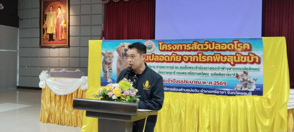 เมื่อเวลา 09.30 น. (10 มีนาคม 2569) ที่อาคารเอนกประสงค์อบต.บ่อวิน ด้วย ทางอบต.บ่อวินได้จัด “โครงการขับเคลื่อนการดำเนินงานป้องกันโรคพิษสุนัขบ้า ภายใต้โครงการสัตว์ปลอดโรค คนปลอดภัยจากโรคพิษสุนัขบ้า ตามพระปณิธานศาสตราจารย์ ดร.สมเด็จเจ้าฟ้าฯ กรมพระศรีสวางควัฒน วรขัติยราชนารี” ขึ้น. เพื่อรณรงค์ให้ความรู้แก่อสม.ในพื้นที่อบต.บ่อวินจำนวน50คน เพื่อให้ความรู้นำไปแจ้งประชาชน เจ้าของสัตว์เลี้ยงสุนัขและแมวให้มีความรู้เรื่อง โรคพิษสุนัขบ้าในสุนัขและแมว และการรณรงค์ฉีดวัคซีนป้องกันโรคพิษสุนัขบ้าให้แก่สุนัขและแมวในเขตอบต.บ่อวิน โดยในครั้งนี้ได้มีนายอธิเดช พลพงษ์ ปลัดอบต.บ่อวินได้กล่าวรายงานประวัติความเป็นมาต่อนายสิรวิชฐ์ อำไพวงษ์ นายกอบต.บ่อวิน