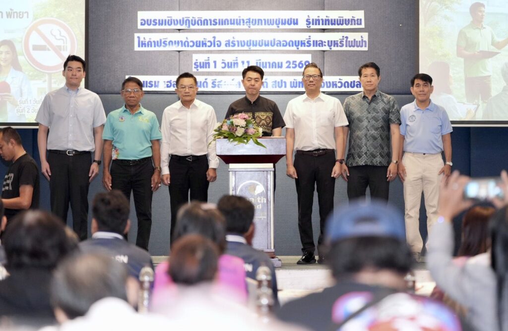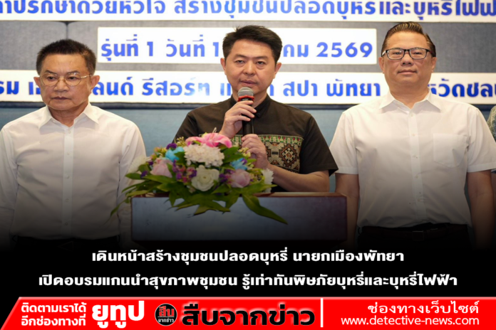 (11 มี.ค. 2569) ณ ห้องประชุมเทียนกิ่ง ชั้น 3 โรงแรมเฮลท์แลนด์ รีสอร์ท แอนด์ สปา พัทยา จังหวัดชลบุรี นายปรเมศวร์ งามพิเชษฐ์ นายกเมืองพัทยา เป็นประธานในพิธีเปิดโครงการอบรมเชิงปฏิบัติการ “แกนนำสุขภาพชุมชน รู้เท่าทันพิษภัย ให้คำปรึกษาด้วยหัวใจ สร้างชุมชนปลอดบุหรี่และบุหรี่ไฟฟ้า” พร้อมด้วยคณะผู้บริหารเมืองพัทยา นำโดยนายวุฒิศักดิ์ เริ่มกิจการ รองนายกเมืองพัทยา นายบรรลือ กุลละวณิชย์ ประธานสภาเมืองพัทยา โดยมีนายสุรชัย สุขสว่าง ผู้อำนวยการส่วนควบคุมโรค สำนักสาธารณสุขและสิ่งแวดล้อม เมืองพัทยา กล่าวรายงาน พร้อมด้วยบุคลากรด้านสาธารณสุขและแกนนำสุขภาพชุมชนเข้าร่วมอบรม
