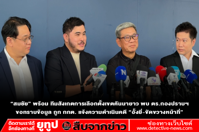 “สมชัย” พร้อม ทีมสังเกตการเลือกตั้งเขตคันนายาว พบ ตร.กองปราบฯ ขอทราบข้อมูล ถูก กกต. แจ้งความดำเนินคดี “อั้งยี่-ขัดขวางหน้าที่” ตร.ขอเวลา 2 สัปดาห์ ตอบข้อมูล