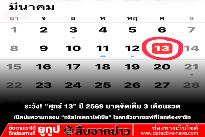 ศุกร์ 13 ปีนี้ (2569) มีวันที่ 13 ตรงวันศุกร์อยู่สามเดือน คือ ก.พ. / มี.ค. / พ.ย.