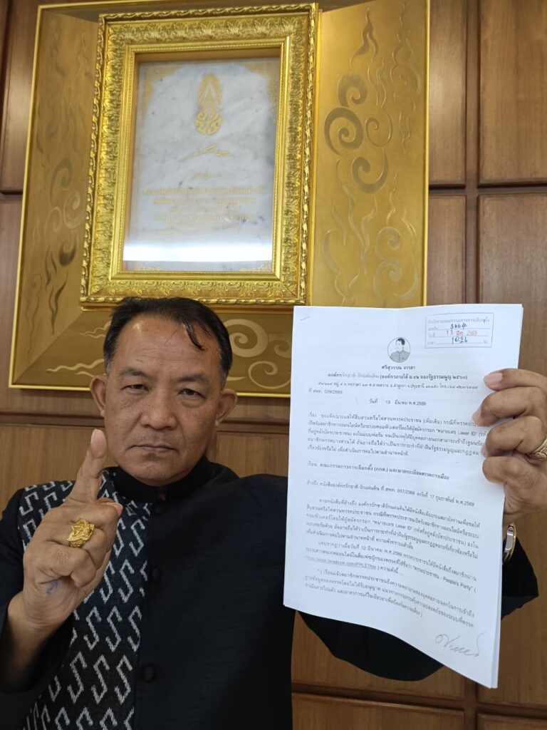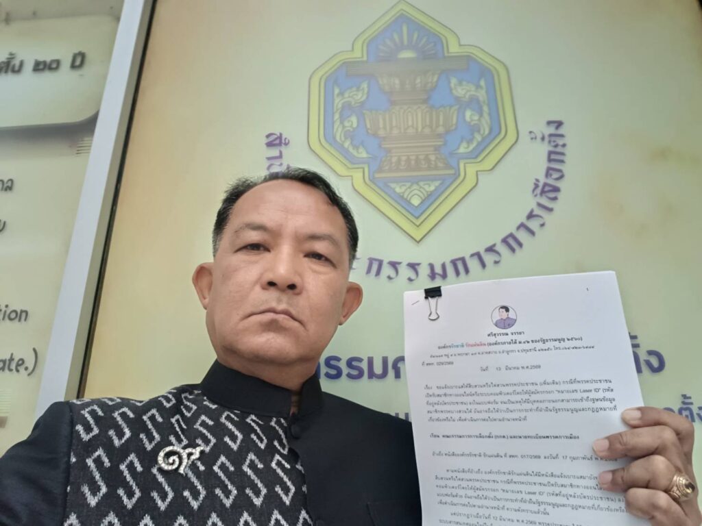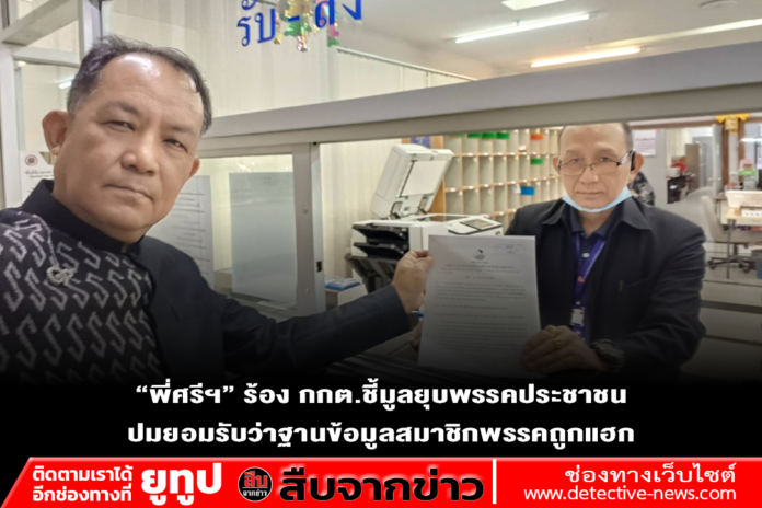 เวลา 10.00 น. วันที่ 13 มี.ค.69 ที่สำนักงา กกต.ศูนย์ราชการฯ อาคาร B นายศรีสุวรรณ จรรยา ผู้นำองค์กรรักชาติ รักแผ่นดิน ได้เดินทางมายื่นคำร้องต่อคณะกรรมการการเลือกตั้ง (กกต.) และนายทะเบียนพรรคการเมือง ให้สืบสวนหรือไต่สวนและวินิจฉัยยุบพรรคประชาชน กรณีพรรคประชาชนออกมายอมรับว่ามีบุคคลภายนอกสามารถเข้าถึงฐานข้อมูลสมาชิกพรรคบางส่วนได้ถือได้ว่าเป็นการเย่อหย่อนต่อการป้องกันข้อมูลส่วนตัวของสมาชิก อันอาจทำให้มิจฉาชีพอาจนำข้อมูลไปก่ออาชญากรรมอันเป็นการคุกคามความสงบเรียบร้อยหรือศีลธรรมอันดีของประชาชนได้ ซึ่งขัดต่อรัฐธรรมนูญ 2560 และ พรป.ว่าด้วยพรรคการเมือง 2560