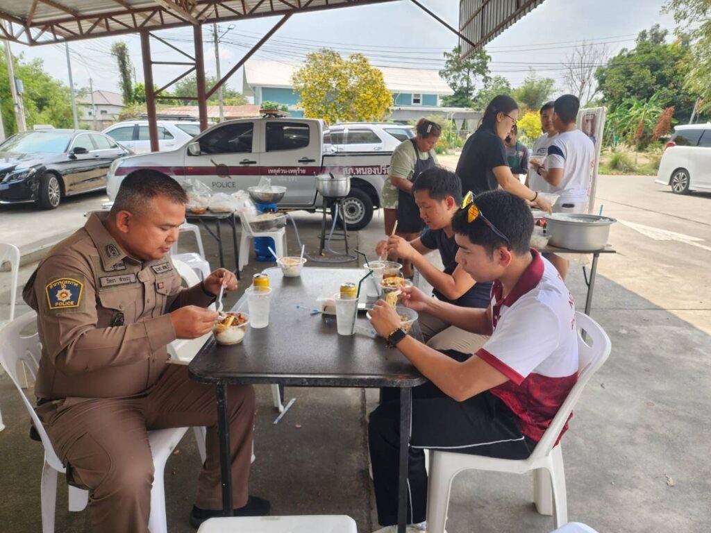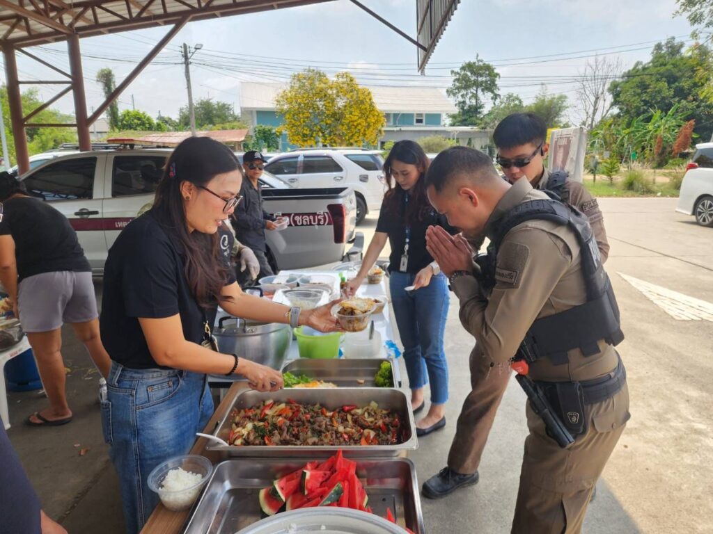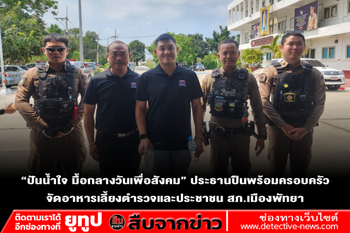 พัทยา – บรรยากาศอบอุ่นและเปี่ยมด้วยรอยยิ้ม เมื่อวันที่ 13 มีนาคม 2569 โครงการอาหารกลางวันเพื่อสังคม ได้จัดขึ้นโดย ท่านประธานปืน พร้อมครอบครัว ที่ได้เชิญคณะกรรมการและที่ปรึกษา ร่วมกันจัดเลี้ยงอาหารกลางวันให้แก่ ข้าราชการตำรวจ และประชาชนที่มาติดต่อราชการ เพื่อเป็นกำลังใจในการทำงานและสร้างบรรยากาศแห่งการแบ่งปัน