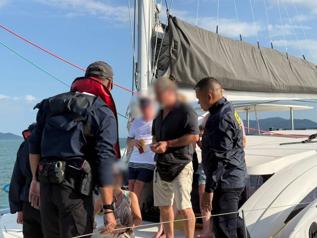 ต่อมาเจ้าหน้าที่ได้ลงพื้นที่ตรวจสอบบริเวณน่านน้ำจังหวัดภูเก็ต และพบเรือใบหรูต้องสงสัยลำหนึ่ง จึงเข้าทำการตรวจสอบ พบชายสัญชาติเยอรมันทำหน้าที่เป็นกัปตันเรือจากการตรวจสอบเบื้องต้นพบว่า เรือลำดังกล่าวอยู่ภายใต้บริษัทที่เปิดดำเนินการในลักษณะให้เช่าเรือแต่มีการนำเรือไปใช้ลักลอบจัดแพ็กเกจท่องเที่ยวให้แก่นักท่องเที่ยวต่างชาติ ภายในเรือพบนักท่องเที่ยวชาวเยอรมันจำนวน 6 คน