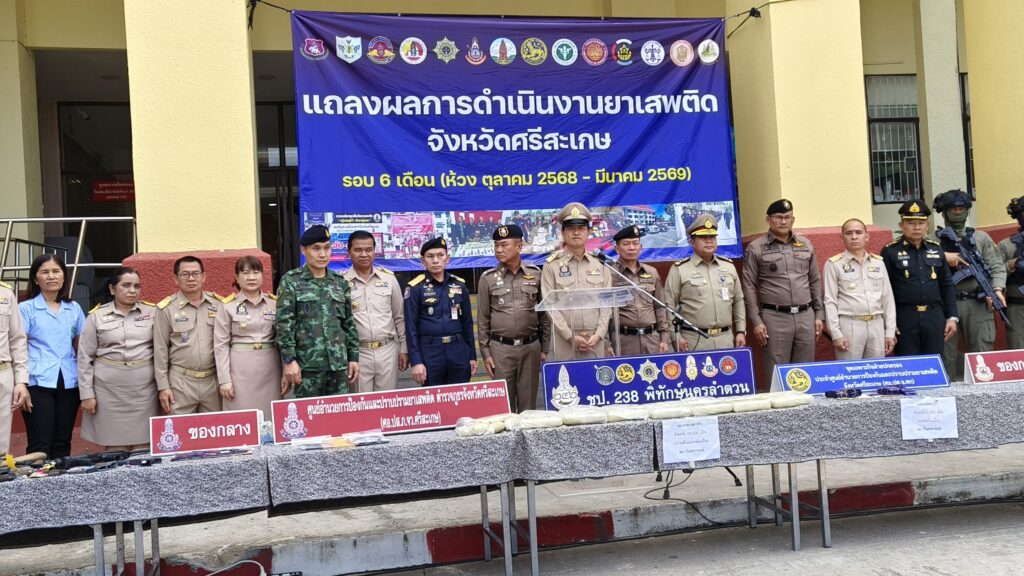 “ศรีสะเกษ” โชว์ผลงาน 6 เดือน รวบเครือข่ายนักค้ายาเสพติด 2,671 ราย และผู้ต้องหา 2,712 คน ของกลางยาบ้ากว่า 6.5 แสนเม็ด ไอซ์ 15.42 กรัม คีตามีน 3 กรัม ยึดทรัพย์สินมูลค่ากว่า 39 ล้านบาท
