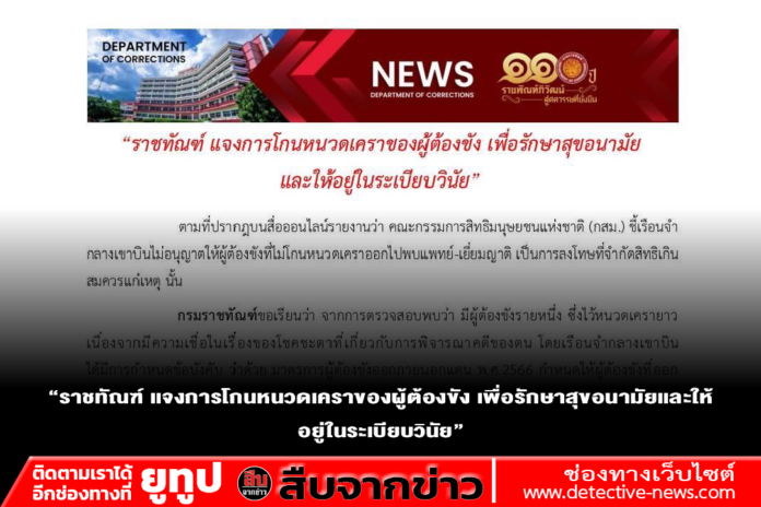 กรมราชทัณฑ์ขอเรียนว่า จากการตรวจสอบพบว่า มีผู้ต้องขังรายหนึ่ง ซึ่งไว้หนวดเครายาว เนื่องจากมีความเชื่อในเรื่องของโชคชะตาที่เกี่ยวกับการพิจารณาคดีของตน โดยเรือนจำกลางเขาบิน ได้มีการกำหนดข้อบังคับ ว่าด้วย มาตรการผู้ต้องขังออกภายนอกแดน พ.ศ.2566 กำหนดให้ผู้ต้องขังที่ออกภายนอกแดน เพื่อเยี่ยมญาติผ่านระบบไลน์ หรือการพบแพทย์ผ่านระบบ Telemedicine ต้องโกนหนวดเคราให้เรียบร้อย กฎระเบียบดังกล่าว เพื่อรักษาความสะอาดสุขอนามัย รวมถึงรักษาระเบียบวินัยของผู้ต้องขังโดยเป็นไปตามระเบียบกรมราชทัณฑ์ ว่าด้วยการดำเนินการเกี่ยวกับการอนามัย และการสุขาภิบาลของผู้ต้องขัง พ.ศ.2561 ข้อ 10 ระบุว่า “ให้เรือนจำจัดให้ผู้ต้องขังทุกคนดูแลสุขอนามัยในเรื่องดังต่อไปนี้ (2) การโกนหนวด และเครา” ซึ่งผู้ต้องขังดังกล่าว ได้มีการอ้างเหตุเพียงเพื่อให้เกิดความโชคดี เหตุผลดังกล่าวเป็นความเชื่อส่วนบุคคล มิใช่การปฏิบัติตามหลักพุทธศาสนาและมิใช่ประเพณีนิยม จึงเป็นการจงใจฝ่าฝืนระเบียบของเรือนจำและอาจเป็นเหตุให้ผู้ต้องขังอื่นเอาเยี่ยงอย่าง และก่อให้เกิดความไม่เสมอภาคได้ ในส่วนของการดูแลสุขภาพผู้ต้องขังยังคงได้รับสิทธิตามมาตรฐาน โดยได้ประสานแพทย์เพื่อตรวจรักษาในครั้งต่อมา และได้รับการดูแลจากพยาบาลประจำเรือนจำในการรักษาพยาบาลอย่างต่อเนื่อง ไม่มีการปิดกั้น ได้รับการตรวจรักษาตามปกติ