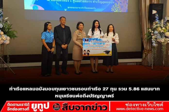 ท่าเรือแหลมฉบัง มอบทุนการศึกษาอย่างยั่งยืนให้เยาวชนในชุมชนรอบท่าเรือที่มีผลการเรียนและความประพฤติดี จำนวน 27 ทุน รวมวงเงิน 586,000 บาท หวังเปิดโอกาสให้เยาวชนได้ศึกษาต่อจนสำเร็จระดับปริญญาตรี สร้างกำลังสำคัญในการพัฒนาประเทศในอนาคต